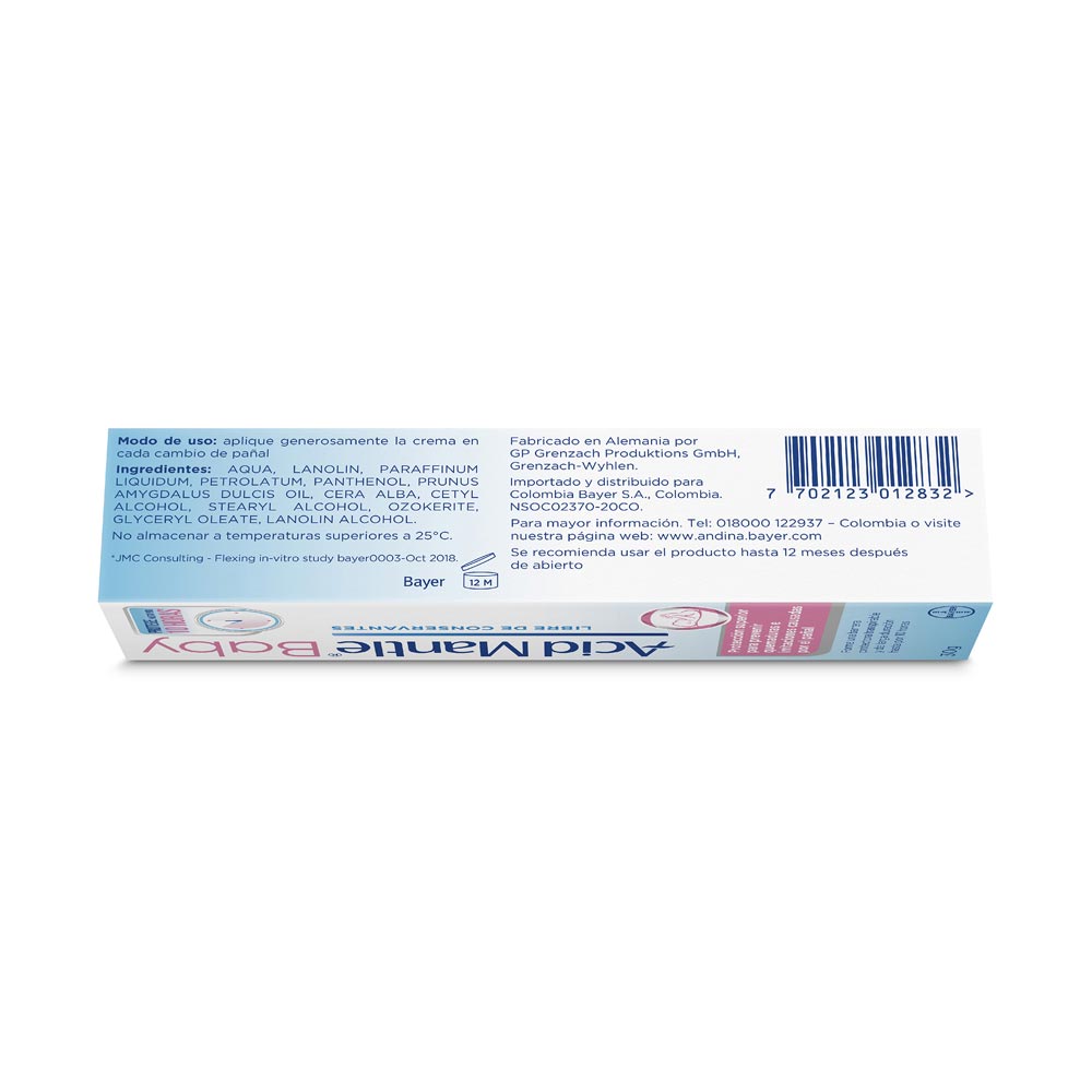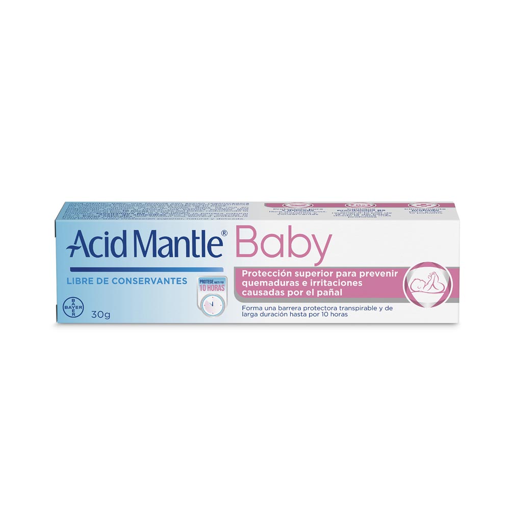La crema Acid Mantle Baby de Bayer es una crema protectora para la piel del bebé, formulada con ingredientes de origen natural, como manteca de karité, aceite de oliva y vitamina E. Ayuda a proteger la piel del bebé de las irritaciones causadas por el pañal.